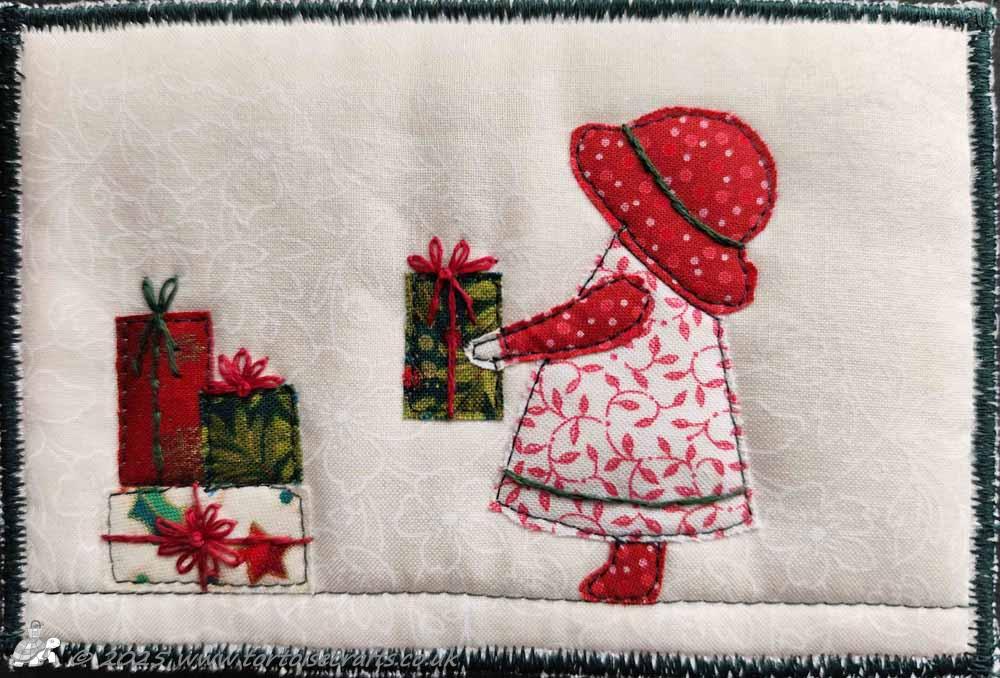 There is a new FREE Quilted Postcard pattern in the members area, Sunbonnet Sue Delivering The Presents. Remember it's free to join.