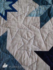 Once the centre was together, I layered and quilted it. I made templates of different stars, including a couple in the top and randomly laid them on, drew them round them and machine quilted.