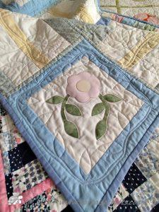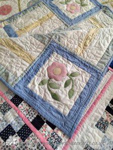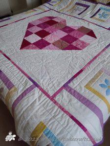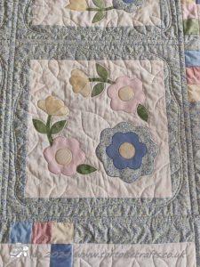 I have a big back catalogue of work, files and files of patterns and quilts I have designed, I don’t very often go back and re-use patterns, I tend to end up designing new things!!! But I really should go back and use older designs, and that is what I did with this the Floral Sampler Topper Quilt.