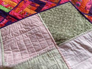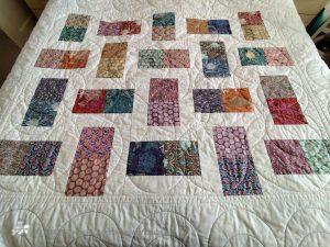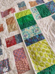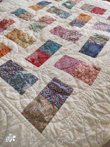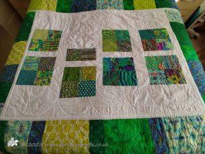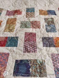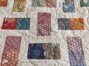 This quilt has been made over the term at class, I wanted to show how you can do Stitch n’ flip quilt-as-you-go quick make on the sewing machine quilt. There are lots of designs that work to this method and so instead of just making one, I went with a Sampler quilt showing six different ones.