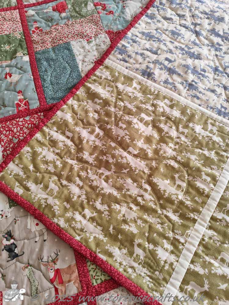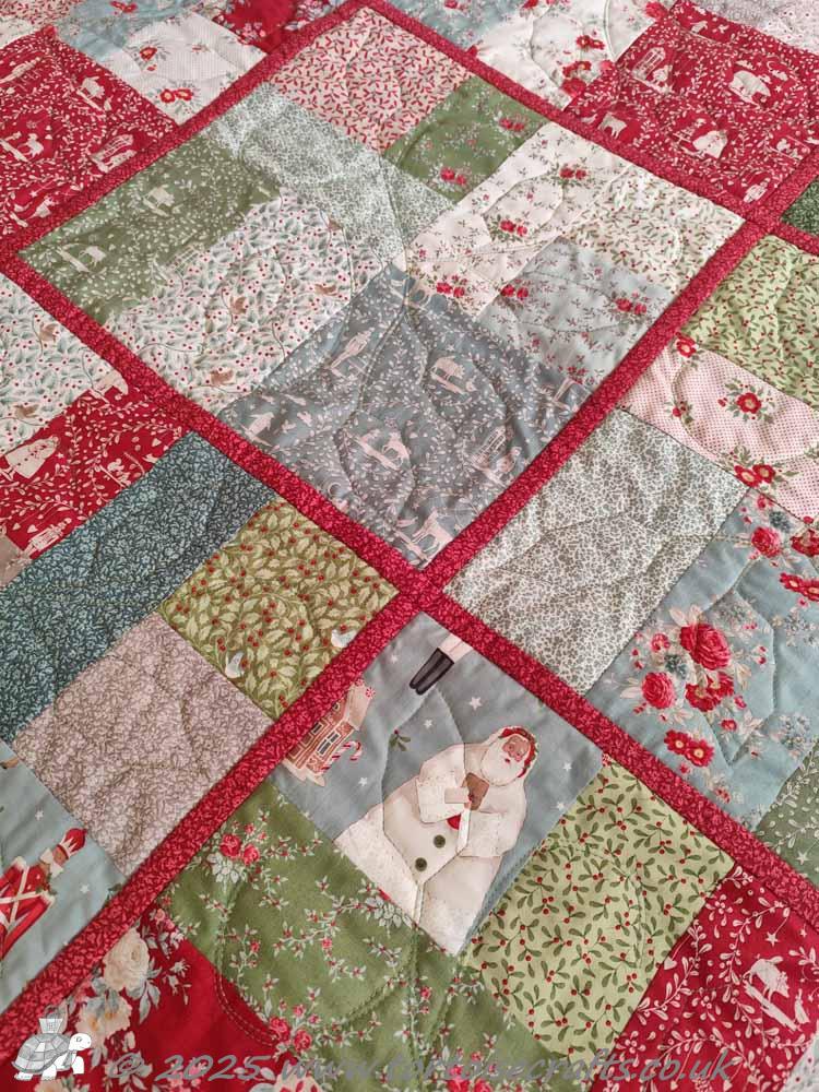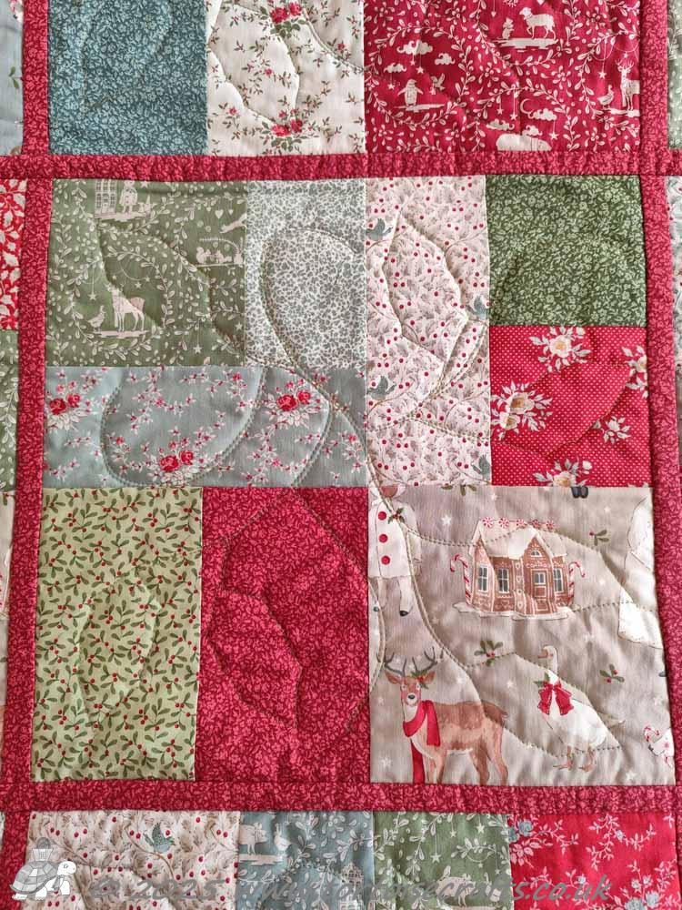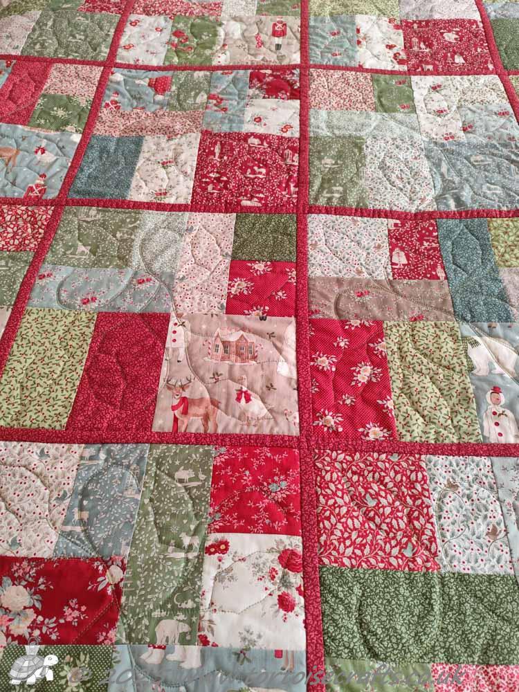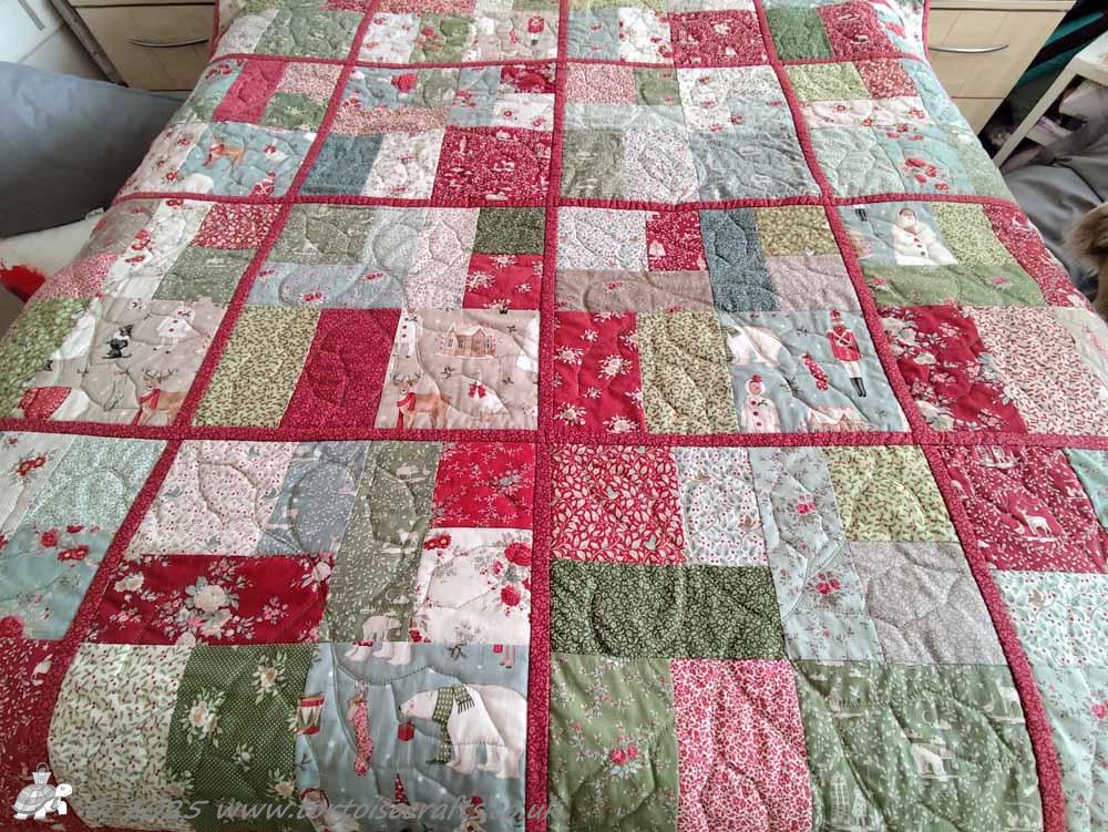 I machine quilted the borders and then put all the pieces together using the quilt-as-you-go construction method. Before binding the edges and giving the quilt to Evie for Christmas.