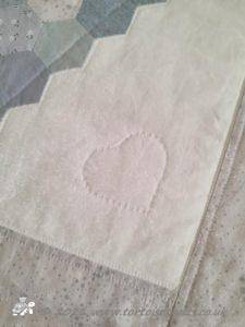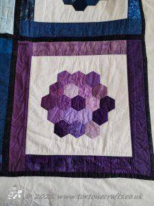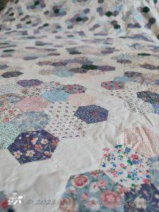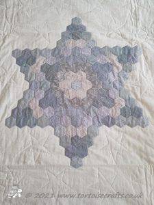 Hexagon quilt - this quilt was finished in 1997 - so that makes it 24 years old!!! We used to have it on our bed every winter as it is really warm, but we haven't used it for the last few years and it is folded up in the drawer under the bed (hence the creases!)
