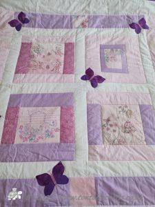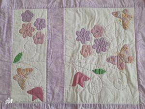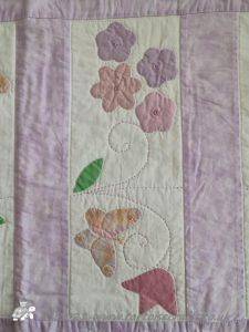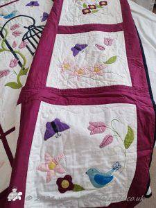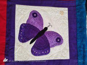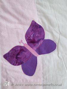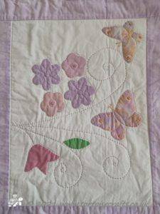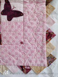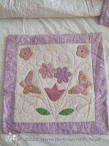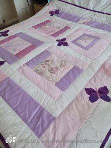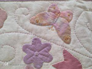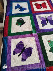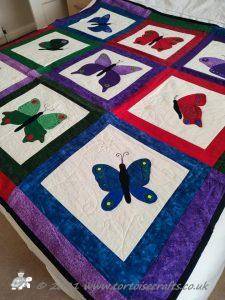 I then appliqued butterflies randomly on, before layering with polydown wadding and cotton backing and machine quilting.
