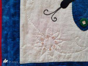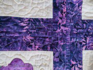 The quilt top was layered and then machine quilted. I used metallic white/iridescent from Madeira threads, it just adds a sparkle, when the light catches it.