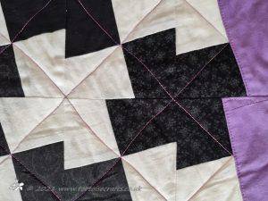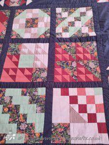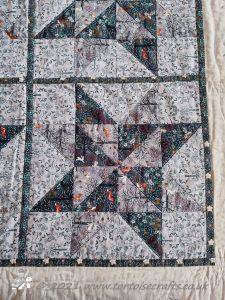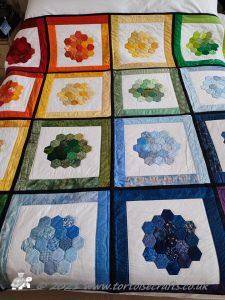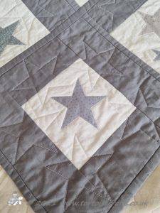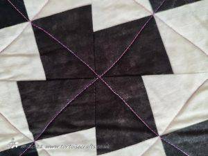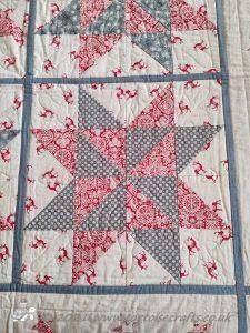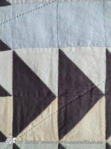 This quilt was made a number of years before I learnt about grey thread!! It was only when I became a haberdashery buyer and the rep was going through Gutermann thread ranges, when we where going over to them from Sylko. And he was teaching me about the different types, weights, uses and how to colour match, that I first learnt that grey will blend with any colour and is really good for piecing mixed colours together. Since then I have always kept a light, mid and dark tone of grey for piecing in my thread drawer.