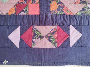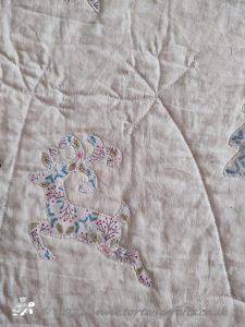 The quilt top was made as a whole, centre design and borders and then it was layered and quilted. The wadding has gone very flat and thin from the quilt being used and washed - it has faded on some of the colours, especially the blues.