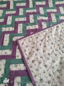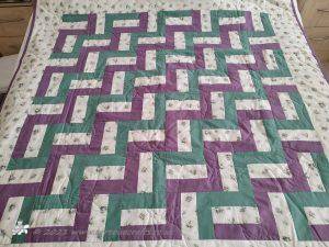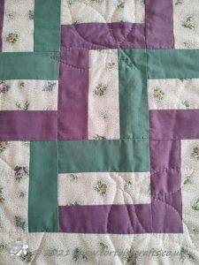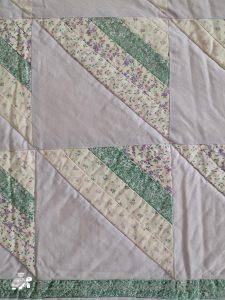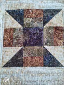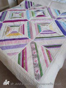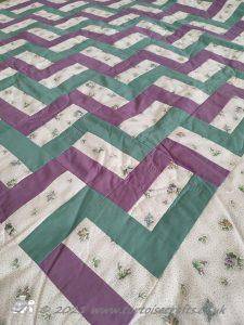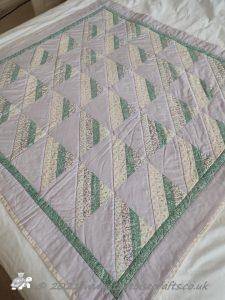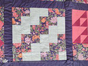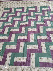 Rail Fence pattern is one very much associated with America. I have used just three strips to make up each square, I have also made it using four strips and seen lots of different variations with different numbers of strips and also a mixture of widths.
