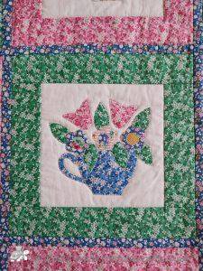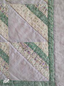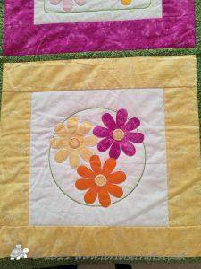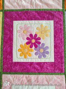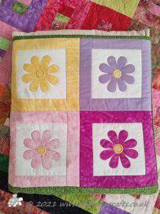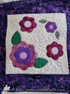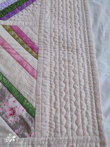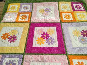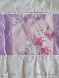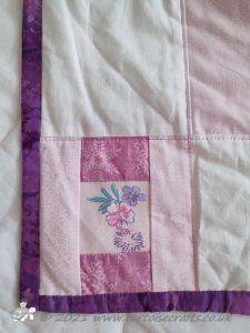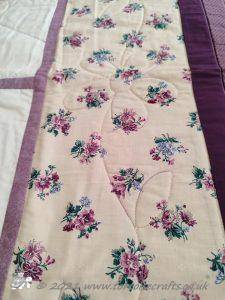 For the borders I just put strips of fabric together, layered and machine quilted. On the wider floral strip of fabric I quilted a flower design, otherwise the quilting is just straight line.
