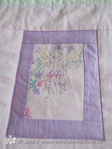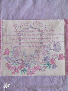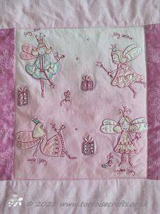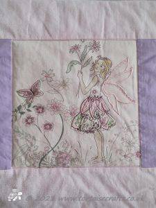 The quilt lives in my bedroom, by the the time I made it Laura was a teenager and didn't want it in her room! I think it is a lovely memory of when she was younger and loved these pretty girly fairy pink t-shirts and fairy wands!!!