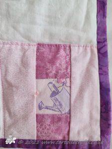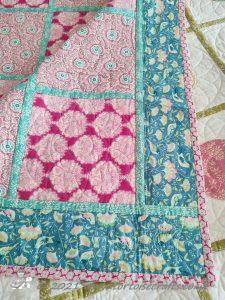For the binding I went with a pink flower fabric which picks out the colour in both sides.