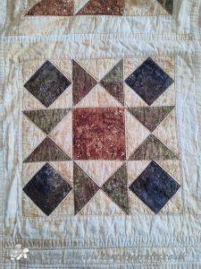 I have also included prairie points on a few squares and around the edge.