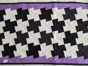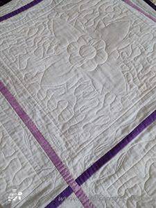 From the pieces I used to demonstrate all the different techniques in my classes, I created a quilt in silver grey and purple in squares. This quilt has a total different look and yet they are the same designs. I gave this second version to a good friend.