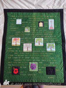 This is both Laura's and my work, it is something we had been talking about creating from about 2013. Originally it was going to be a Remembrance quilt for WW1, we had lots of ideas but we never got round to making it.