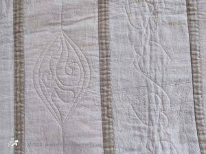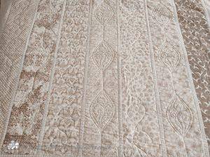 The six strips were joined together and then I created four borders - each made up of two 6.5" wide fabrics, these got quilted with trees on the outer edge and another design. I have shown the back of the quilt as you can see the quilting designs clearer on the Calico.