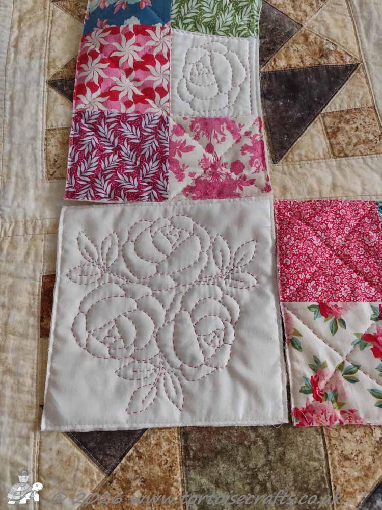 Through March I am going to work on the last panel and corner squares and aim to finish the quilting in April, which, if all goes to plan, I should have Laura’s Roses quilt finished by the end of April.