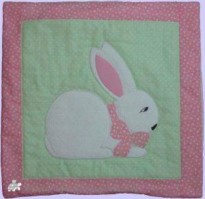 For Easter teaching projects I created some little reversible gift bags, tulip cushions and finally a rabbit cushion. Actually the rabbit cushion was originally designed in 1995 as part of a child’s quilt, I was looking for another pattern when I came across it and decided it would make a great cushion design.