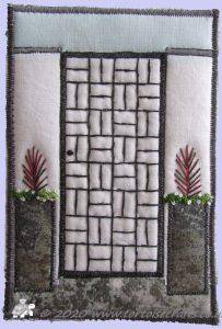Other than the quilt I have been working on the Gate series of postcards, three more completed for birthdays and Father’s day. Also designed another four! How many gates can I create?