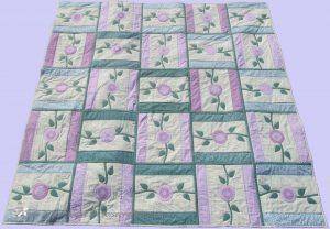 On the teaching front, the Textured Flower Cushion has been loved by everybody who has seen it. I have completed the runner ‘The Birds and the Butterflies’ and I have started teaching a double sided quilt-as-you-go quilt called Woven. This is a project that will last over the summer holidays and as it is in 15½” squares it isn’t too big or hot to handle – if we get hot weather!