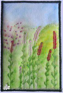 Over half term Laura and I had a little play and they are great – so far I have created ‘watercolour’ effect backgrounds to a couple of postcards. Have only finished embroidering one!! So, far…