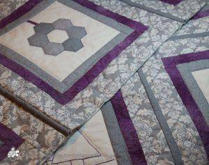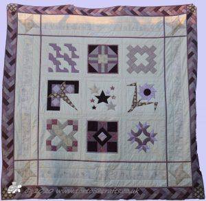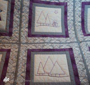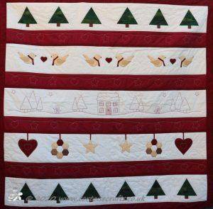 Ticked off the list for October was completing the ‘Winter Warmer’ quilt and writing all the handouts, this is the project that I will be demonstrating over the rest of the term. I designed it as a Winter quilt not a Christmas one, as I wanted to be able to use it for a few months not just over Christmas! But it would be very easy to give it a more Christmas feel with different fabrics and adding a few embellishments and the I will be creating is a more Christmas themed and alternative layout version in the classes – using silver grey and purple fabrics.