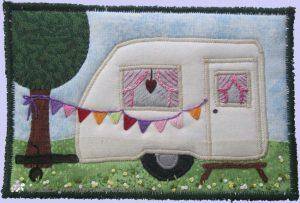 I have created a few postcards this month, the usual Yellow duck one, but also a hanging basket and sundial and finally a caravan one – seven postcards in total. The only other sewing was sewing on name labels on school uniforms for my nieces and nephew in Derbyshire!!