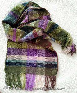 I haven’t been in a place to concentrate on new ideas and techniques. I have done a lot of weaving, finished the piece on the loom and turned that into a bag for me and then I set the loom up with a scarf. The colours are inspired by the landscape – hills, rivers and lakes, heather and moors – so, greens, browns, purples and blues. I think once the scarf is made then I will use the same colours for a tote bag.