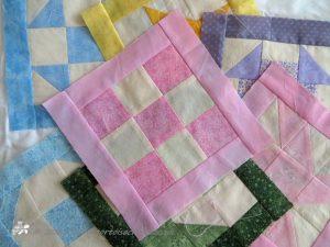 And in that vein, the series I am going to be working on and sharing with you is fulfilling a number of my aims for this year – the starting point of the project will be using a few squares that have been sitting in the orphan square box. The squares in question are all Nine Patch designs. The other thing is that all the squares that I am going to make will be made using a lot of the smaller scraps of fabric from all those lovely patchwork cotton to the lots and lots of scraps of calico!!!