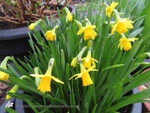 And as the Spring is rushing towards us, there are things in the garden that I need to get sorted. Its lovely to see all the bulbs coming up, the pots of dwarf narcissus especially the Tete a tete ones are beginning to explode into flower, creating colour. Unfortunately the hellebores have been disappointing, only one plant has done well this year and has lots of blooms. The other three are rather sad, I don’t think they are happy in the pots, they are meant to be ok grown in pots but … I think I will plant them in the front garden.