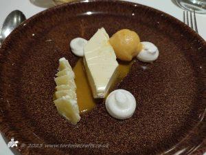 The hotel had a couple of comfortable lounges with wing back chairs and deep sofas, one had a real fire and a fish tank, there were no tv’s, just board games, if you wanted to play them, from chess to Trivial Pursuits. They have a bar area, that you can eat in, but we booked the main restaurant. We would come down to one of the lounges, and get a drink – they had a very nice cider – Wildsider from the Ottery Brewery, and they would also bring the menu, our order was taken in the lounge and when the starter was ready they would take you through to the restaurant. The food was brilliant, Tony loves his food and would have all three courses, I tended to go with just main and dessert, every dish we had was really good, there was nothing we could fault – the meat was tender and the Risotto, I had it twice as it was so nice. All the meat and fish are locally sourced.
