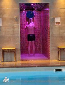 Before I finish this Ramble – I must mention the spa – now I don’t like water, I can’t swim but I had promised Tony I would go to the spa with him, he loves water. The spa was a lovely quiet space, with chairs round the edge of the pool, where I could sit while Tony splashed around in the pool and went in the sauna and steam room and then came out and tipped a bucket of cold water over himself!!! I also promised I would try the hydrotherapy pool, which I did with trepidation the first time, I’m seriously not comfortable in water, I don’t even like baths – much prefer showers, I don’t like it near my face and being my height, when sitting on the bench in the hydro pool it was up round my neck, but it was warm and I will say relaxing and soothing to my muscles. I didn’t go down to the spa on the Wednesday that we arrived but the following three days I joined Tony in the spa. I still don’t like water and I still don’t like walking round the edge of the pool but I found I don’t mind a hydrotherapy pool!!!!