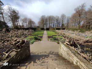 We have been to Castle Drogo twice before, the first time it was covered in scaffolding, and we did the roof walk to see how they were working on making the castle waterproof for the first time in its life. The second time most of the scaffolding was down but only a small part of the inside was open. This time it was all finished, a shiny bright clean stone castle sitting at the top of the cliff looking over the rain clouded valley. As it wasn’t actually raining when we arrived, we wandered through the gardens first, just small bits of colour from the hellebores, hyacinths and daffodils and the promise of the tulips and some way in the future the roses. Then the rain came, and we headed into the castle, to wander round this modern, well 1920’s castle, with its mod cons of electricity, heating and lots of indoor bathrooms – Sir Edwin Lutyens certainly knew how to design. He also designed the Cenotaph and the memorial at Thiepval of which there is a model in the Chapel at Castle Drogo.