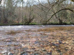 We decided, afterwards, to go and visit Hembury and Holne Woods, described by the National Trust as ‘lichen-clad, ancient oak woodland valleys following the River Dart’……mmmm, well the directions to it were iffy, but we found it, then we discovered the signage was just as iffy to know which way to walk but we followed a couple of dog walkers down a path, which then had a small wooden sign with arrows to the river or fort. We decided on the river and wandered down the path trying to find the lichen-clad trees, we couldn’t find any of them, there were wild daffodils and lots of moss, but no lichen. When we got to the river, we couldn’t walk along it as many trees had come down, it all was a bit disappointing, it was also muddy and wet and getting wetter as we walked as the rain began to come down, heavily, and settled in for the rest of the day. Thank goodness for a nice warm hotel to return to!