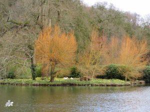 We woke the next day, to sunshine and the odd spit of rain, we headed for Parke – a small Estate that the National Trust owns on the edge of small market town of Bovay Tracey. When we got there the park run was just finishing, lots of very muddy legged runners. We had a lovely, slightly muddy walk around the Estate, passing lots of trees with lichen on them, and with wild primroses flowering underneath, then down into the valley and along the edge of the river. Eventually coming to the walled garden, which had a really lovely wooden gate!!! And also the gnarled old orchard, then back to the car park.