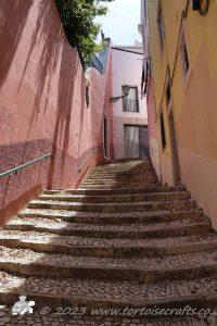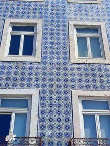 Another destination on our Cruise that tiles dominate was Lisbon, here tiles have been used to decorate the outside of the houses, especially in the old quarter. Most of the patterns are geometric and when you look at the individual tiles then they are fairly simple patterns but when you see them as a whole wall, it becomes a hugely complicated interlocking design. Occasionally there were floral panels by the front doors and on the wall of one of the churches in the courtyard was a big scenic panel of the town Square but mostly they were geometric. They were fascinating and stunning.