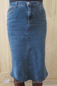 A quick iron and I had a finished skirt!!! Something I was really happy with, its comfortable to wear, helps its stretch denim, it’s a good everyday garment, that will work with my tops and shorter jumpers (those that I wouldn’t wear with just leggings) and will look good with my aran style cardigans! I can wear it over my leggings with my sheepskin boots in the colder days, but it will also work in the Spring and autumn. I can see this skirt getting a lot of wear.