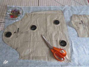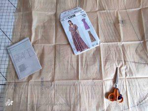 I needed to make a few changes to the pattern for Laura, the main one was to make the skirt a lot longer, by 13” actually. I drew the original skirt patterns out onto dressmakers paper and made them longer, this made it easier to put the pattern pieces on the fabric and cut it all out. By the way I cut out the old fashioned way of a pair of scissors – I keep seeing posts about scissors versus rotary cutting for dressmaking!!!