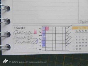 I am also adding to the tracker doing a minimum of an hour of hand quilting a week, if I can do more than that will be brilliant, but rather than pushing myself and saying I must do half an hour a day, I am saying an hour sometime in the week, either as a whole hour or as two half hour sessions.