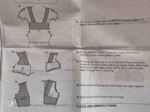 I had in the planner pencilled two other times for dressmaking. The first arrived and I got the project bag out and took it down to the kitchen, I tend to work on the counter top, standing up when doing dressmaking, I find it easier to lay the pieces out and pin on the worktop, and I set up the ironing board behind in front of the oven. I started, I gathered between the notches on the shoulders and underbust, and that’s where I stopped. I read the instructions and looked at the illustration and …. I couldn’t make sense of it!!!