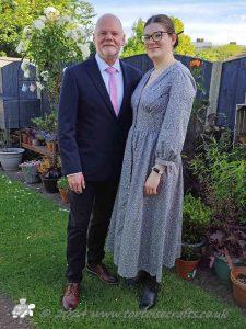 Laura looked lovely in the dress, it was a brilliant dress, doesn’t crease, washes well but I couldn’t borrow it as I made it floor length for Laura, she is just a bit taller than me!!! Only 6 inches!!!