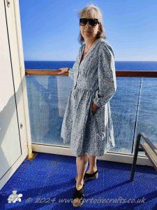 Ahh, while I am on dresses I wore the cotton dress (Aprils dressmaking), the same pattern as I made Laura’s (May’s dressmaking) on the cruise for going to the restaurant for dinner. I still think Laura’s longer version looks better on her than my shorter version on me!!! I wore it with sandals and then the last night I wore it with ¾ length leggings and my boots – far more comfortable and me than just as a summer dress with sandals!!! Like a lot of my dresses I much prefer wearing them with leggings!!!