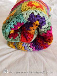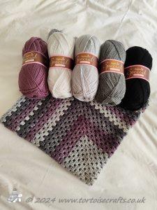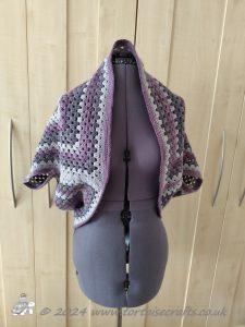 When I was tidying my wardrobe, I found a crochet bolero thing made from a large Granny Square, made from Stylecraft Batik Swirl in shades of greys and grape, I think I have worn it once and then it got stuffed at the back of the cupboard – I’m not really a bolero type person. I can remember when I first started my Granny Square crochet that boleros and cardigans made from Granny squares were all over social media, I had already made two blankets and thought it would be nice to make the bolero. I can remember that it was the project I took on a cruise.