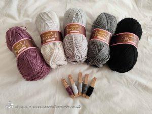 I chose five colours from the Special range Grape, Hint of Silver, Silver, Grey and then I added in Black and ordered them with a few other bits I needed for patchwork from Wool Warehouse.