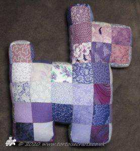 The Patchwork dog has been around for years, we have patterns for it from the 1930's, when Scottie dogs where hugely popular and the motif was used on lots of fabric and jewellery. The original pattern for this dog was made with bigger 2" square pieces as a cuddle toy or cushion. I tend to make it in 1" squares for babies or just to show off some of my favourite scraps of fabric. It is a great way of using up small scraps of fabric and like the hexagons it is worked over papers and so is a nice portable project or great for doing in the evening watching TV.