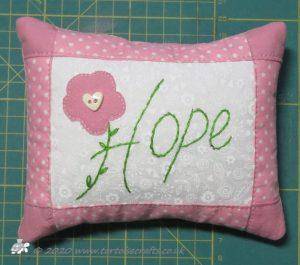 'Hope' mini cushion, I designed this mini cushion/bowl filler as a small project when my classes where shut suddenly with the Corona virus, I wanted a quick small project with a sentiment that was positive and we all need Hope.